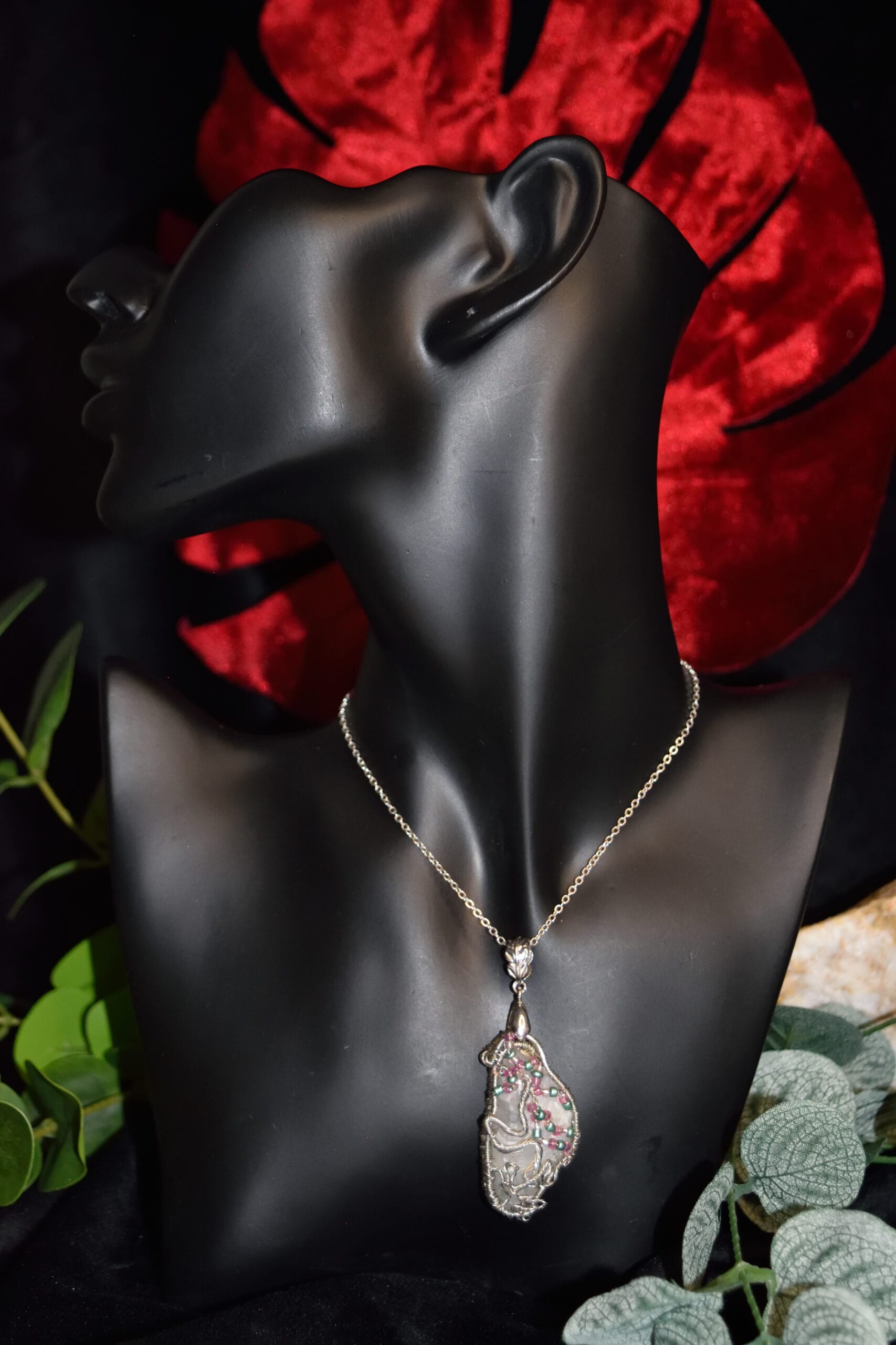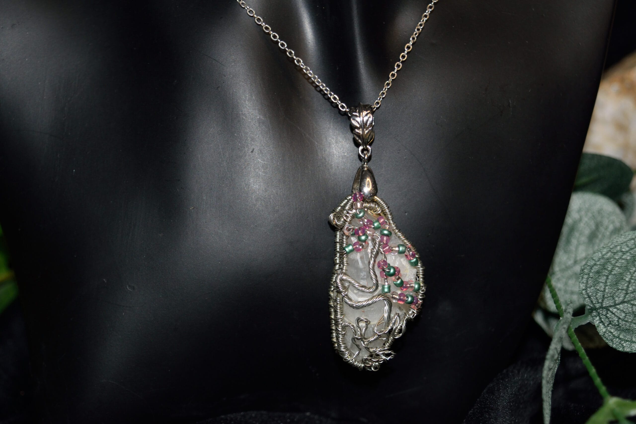 Quartz français ,file tisser argent et perles de verre. LithothérapieLes Cristaux de roche à âme nous aident à recontacter la pureté de l’âme non polluée par le mental. On peut les utiliser en méditation, en visualisation ou les avoir sur soi comme un petit compagnon, rappel de la beauté de notre âme.