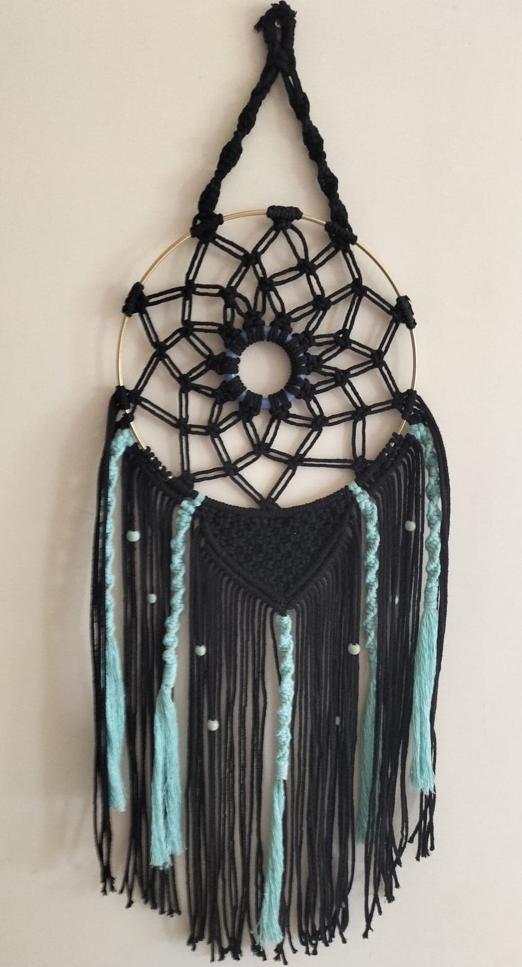 Attrape-rêves bohème en macramé – Noir & Turquoise