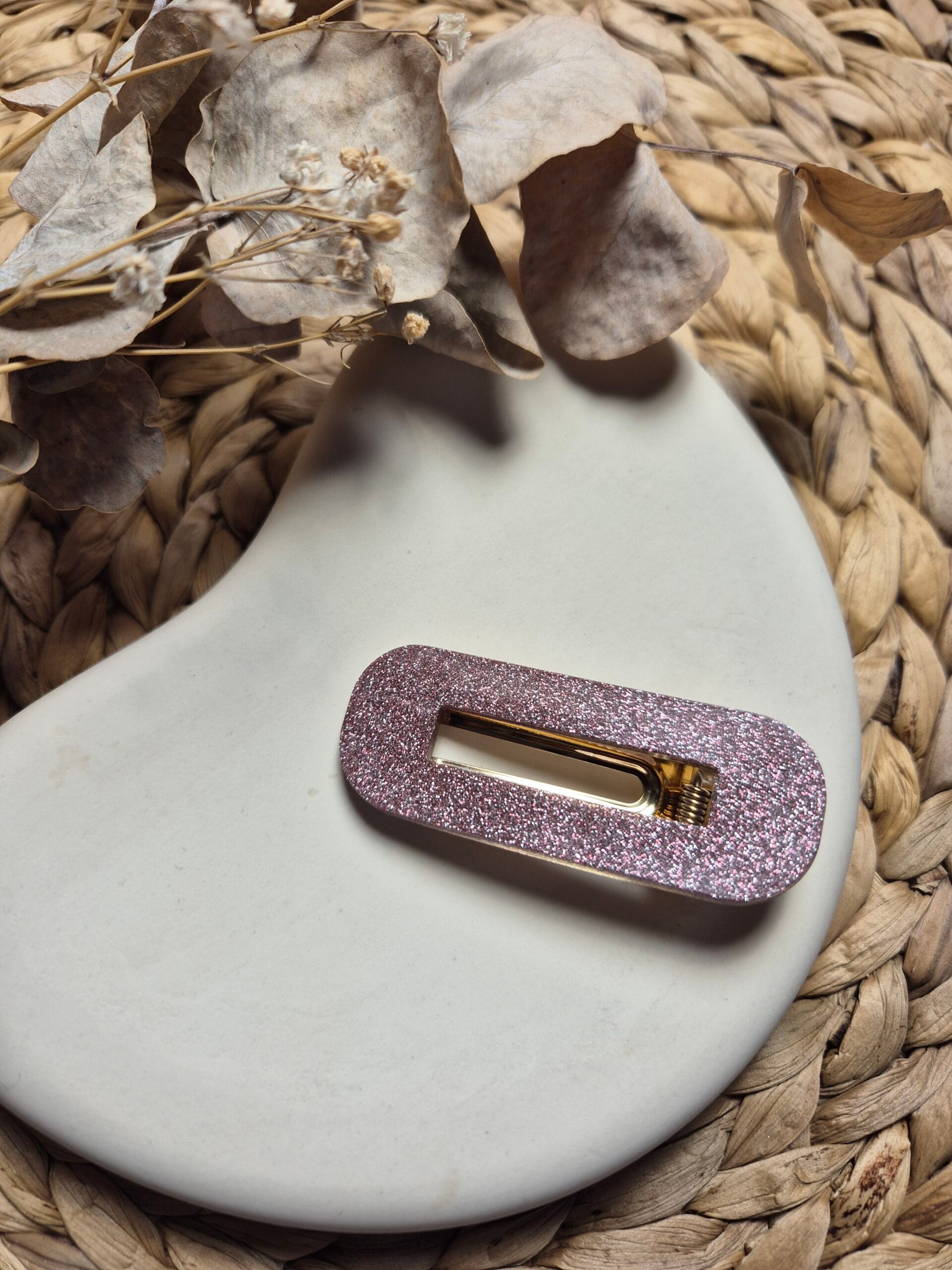 Barrette en résine à paillettes – Coloris Rose Metallica