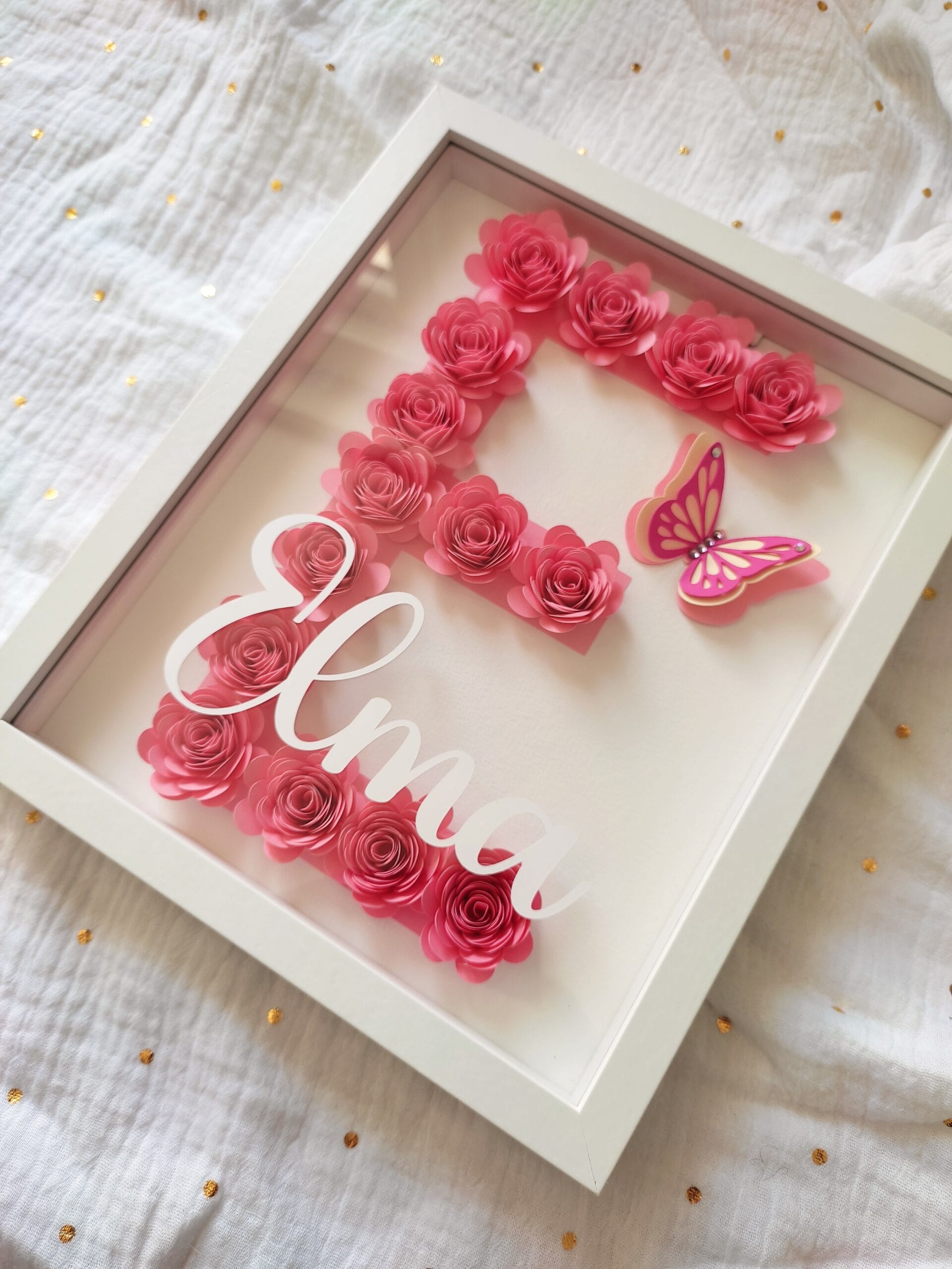 Apportez une touche d’originalité et de douceur avec ce cadre personnalisé fait main.