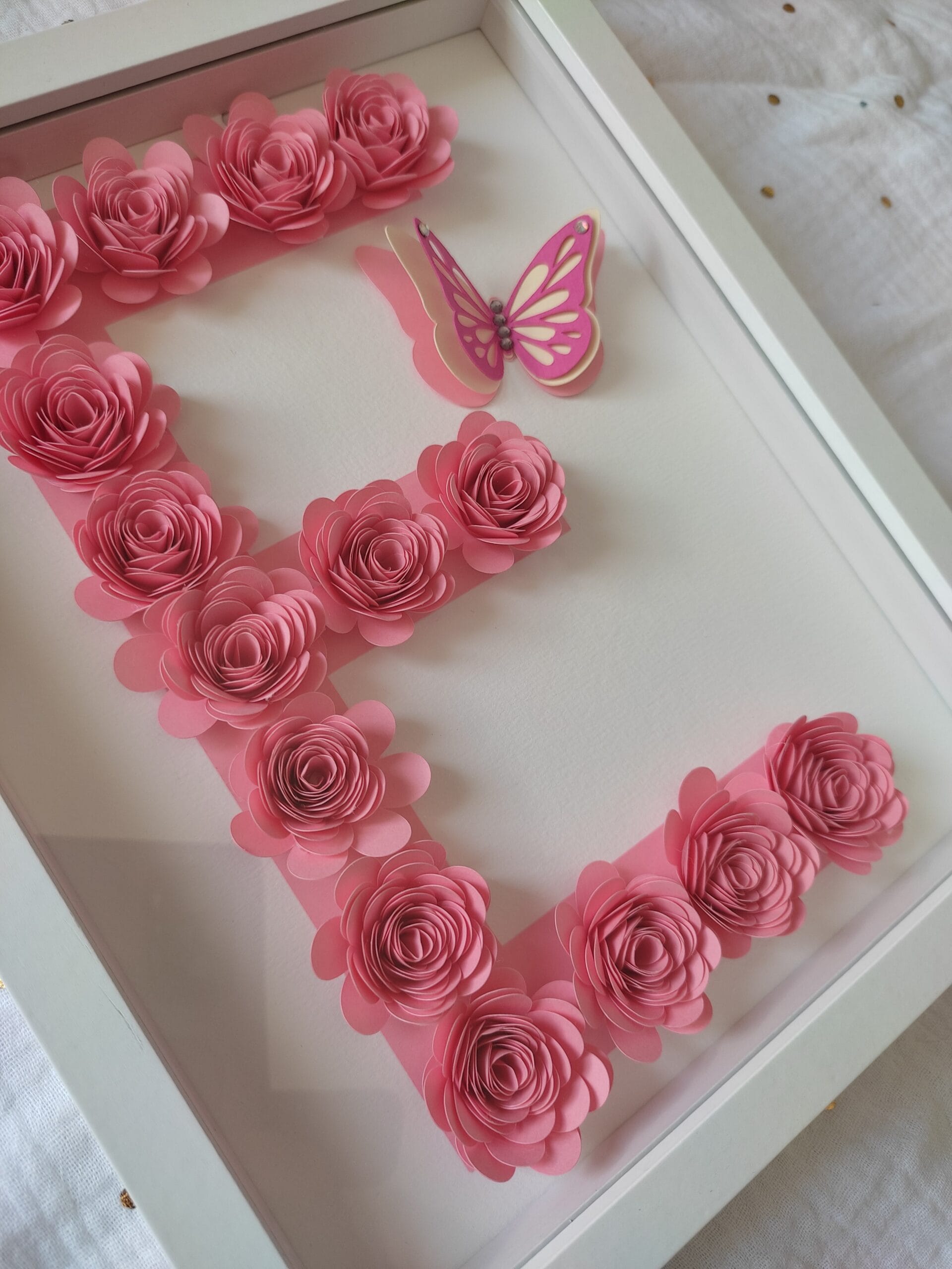 Apportez une touche d’originalité et de douceur avec ce cadre personnalisé fait main. 🌸 Les fleurs en papier sont réalisées à la main. En les façonnant elles prennent une forme en relief pour un effet de profondeur, de modernité et d’originalité au cadre 🌸 💖 CADRE Papier de haute qualité pour garder les couleurs éclatantes dans le temps. Cadre en bois blanc avec vitre plexiglas pour protéger les fleurs Dimensions : 25 x 25 x 8 cm Il peut être accroché au mur ou posé sur un meuble 💖 PERSONNALISATION Cet objet de décoration est entièrement personnalisable ! Pour cela…