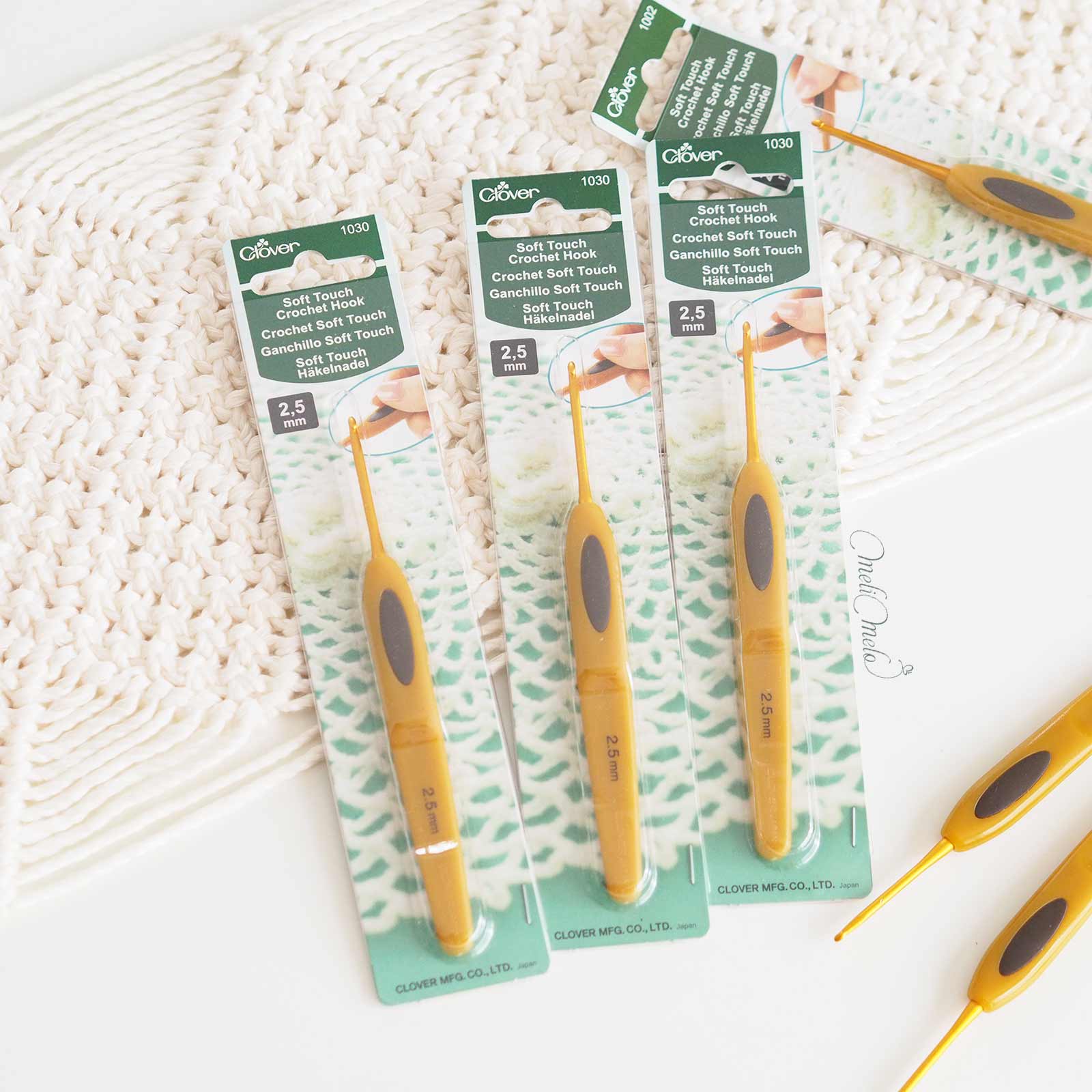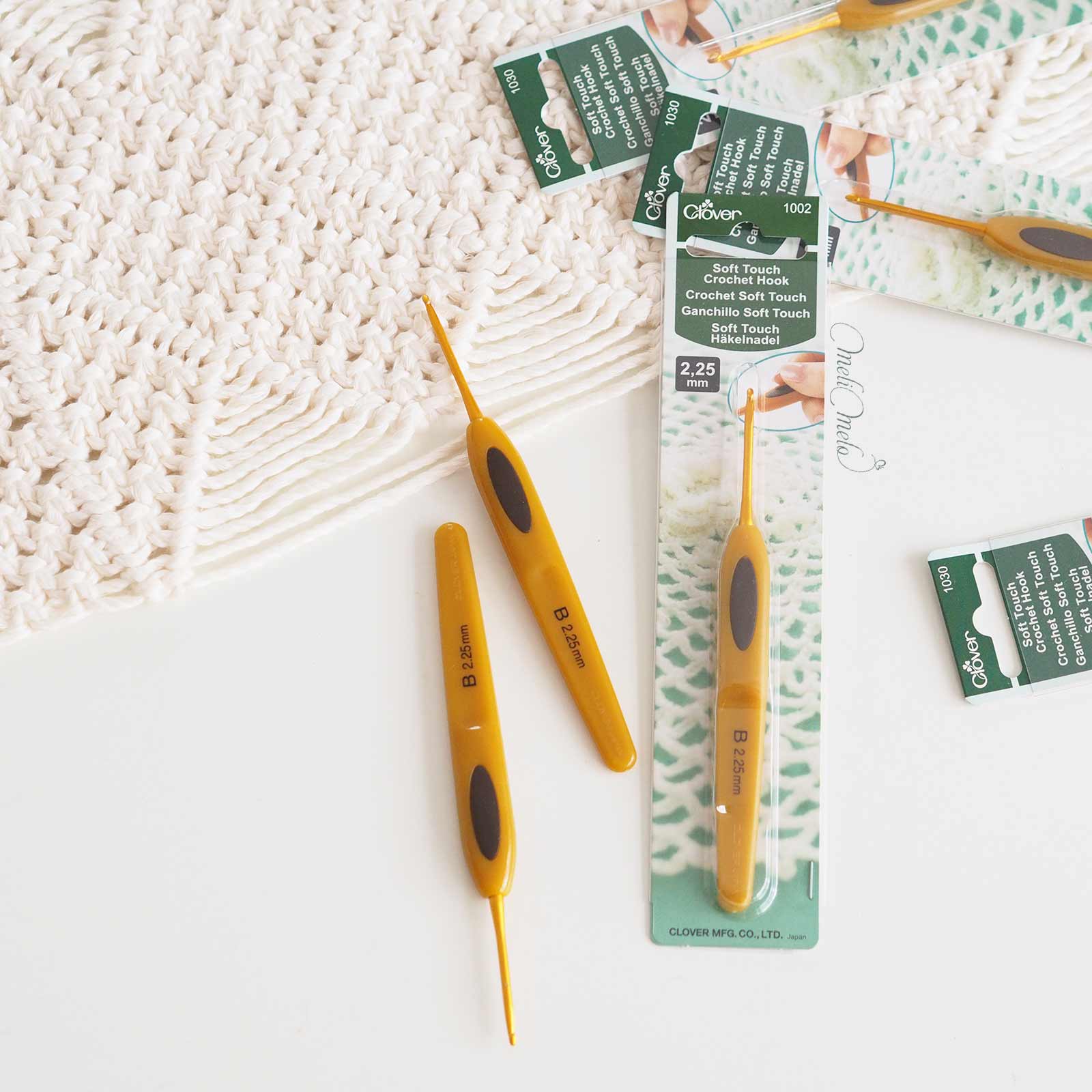 Cette gamme de crochets Soft Touch de Clover est un plaisir à utiliser pendant de longues heures. Le manche ergonomique réduit la fatigue de la main, tandis que la pointe du crochet en aluminium glisse en douceur. La taille du crochet est imprimée sur la poignée et le logo gravé discrètement. 🧶 J’ai choisi les Nº 2,5 et 2,25 mm que j’utilise moi-même fréquemment pour confectionner mes amigurumis notamment mais n’hésitez pas à me contacter si vous avez besoin d’autres tailles. Vendu à l’unité dans le blister original de Clover Japan.
