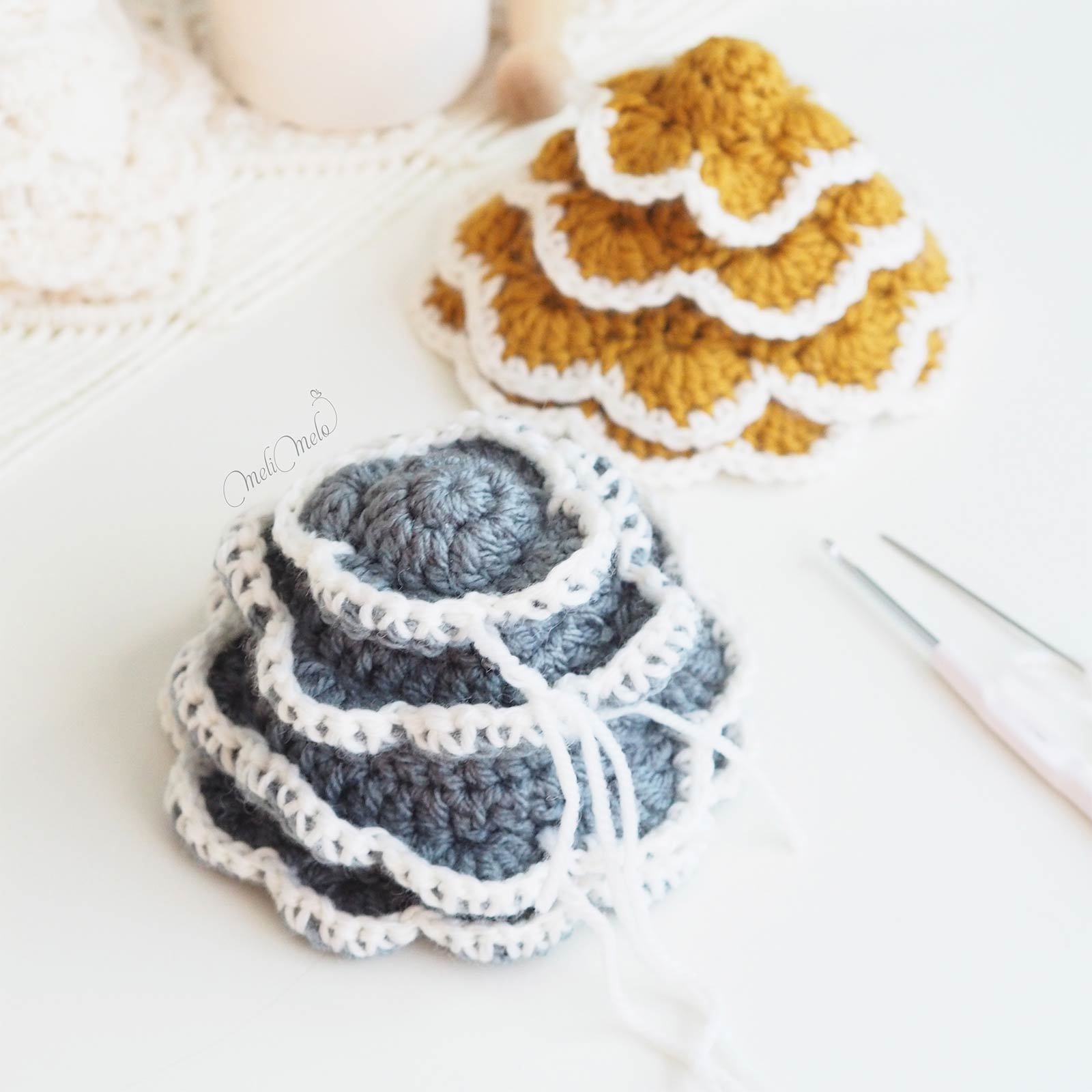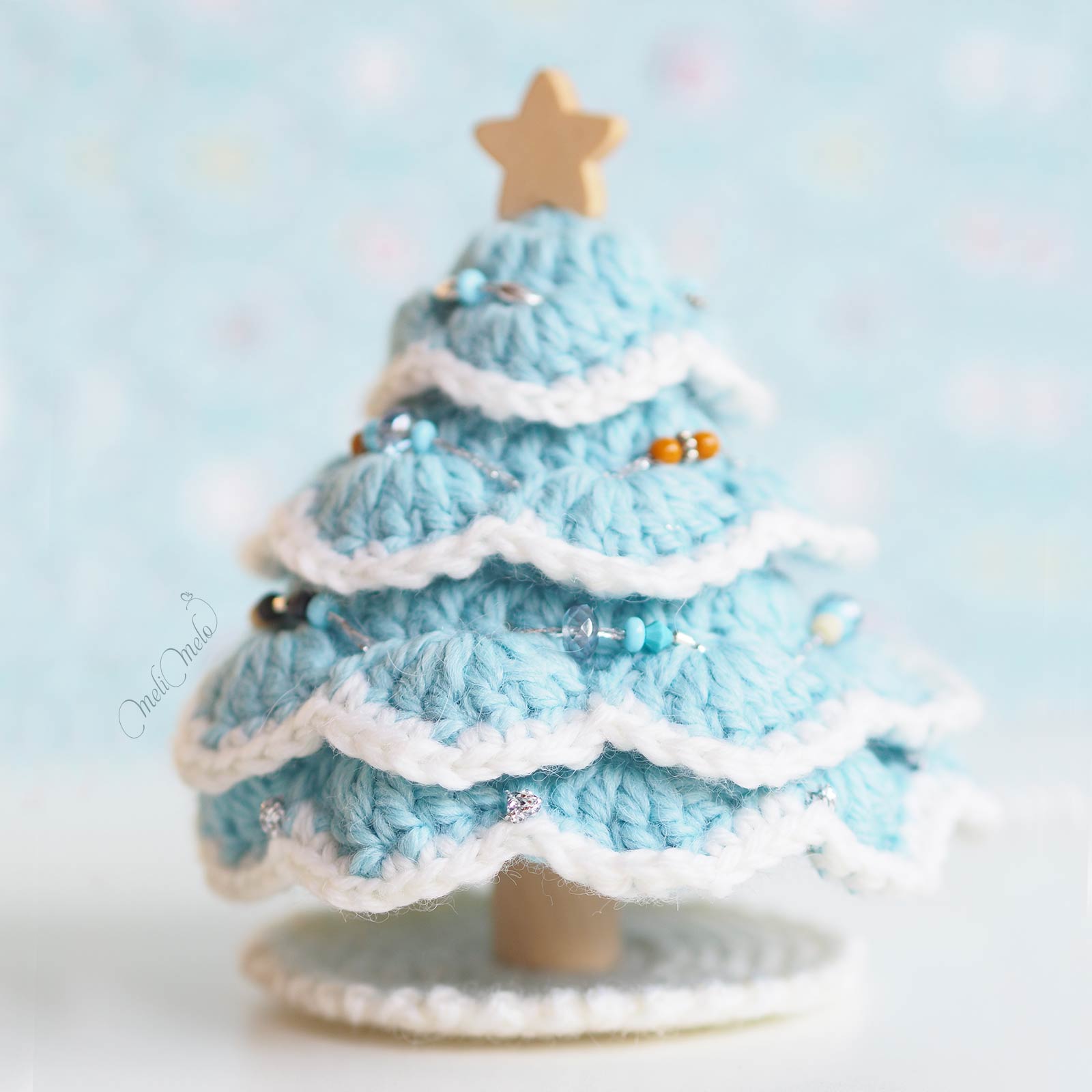 Un joli sapin de Noël avec sa guirlande en perles et fil scintillant, son étoile et son pied en bois naturel posé sur un tapis de neige pour une décoration noëlique trop mimi ❄️🧸🎄 Confectionné par mes soins au crochet en laine vierge de très belle qualité, brodé au point de noeud à la base, il fait environ 12 cm de haut, 11 cm d’envergure, au choix en coloris givré, bleu-gris, vert, jaune moutarde ou rose. La guirlande en perles et fil d’argent ou d’or peut légèrement varier mais elle sera toujours assortie au sapin que vous choisirez. *Les autres…
