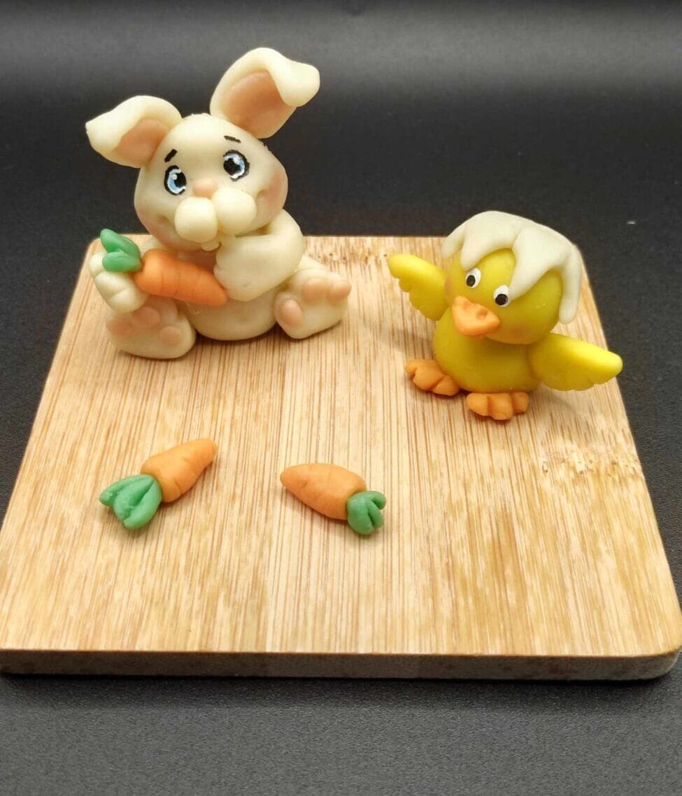 Décoration de Pâques – Lapin gourmand et poussin craquant