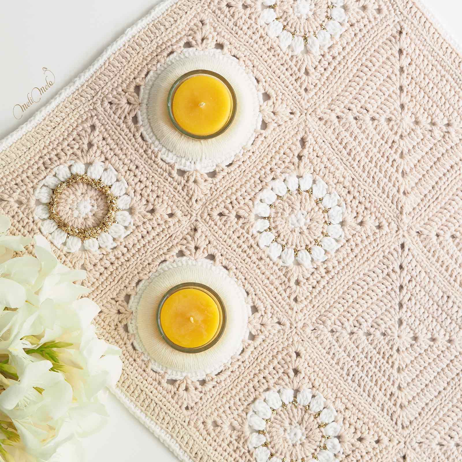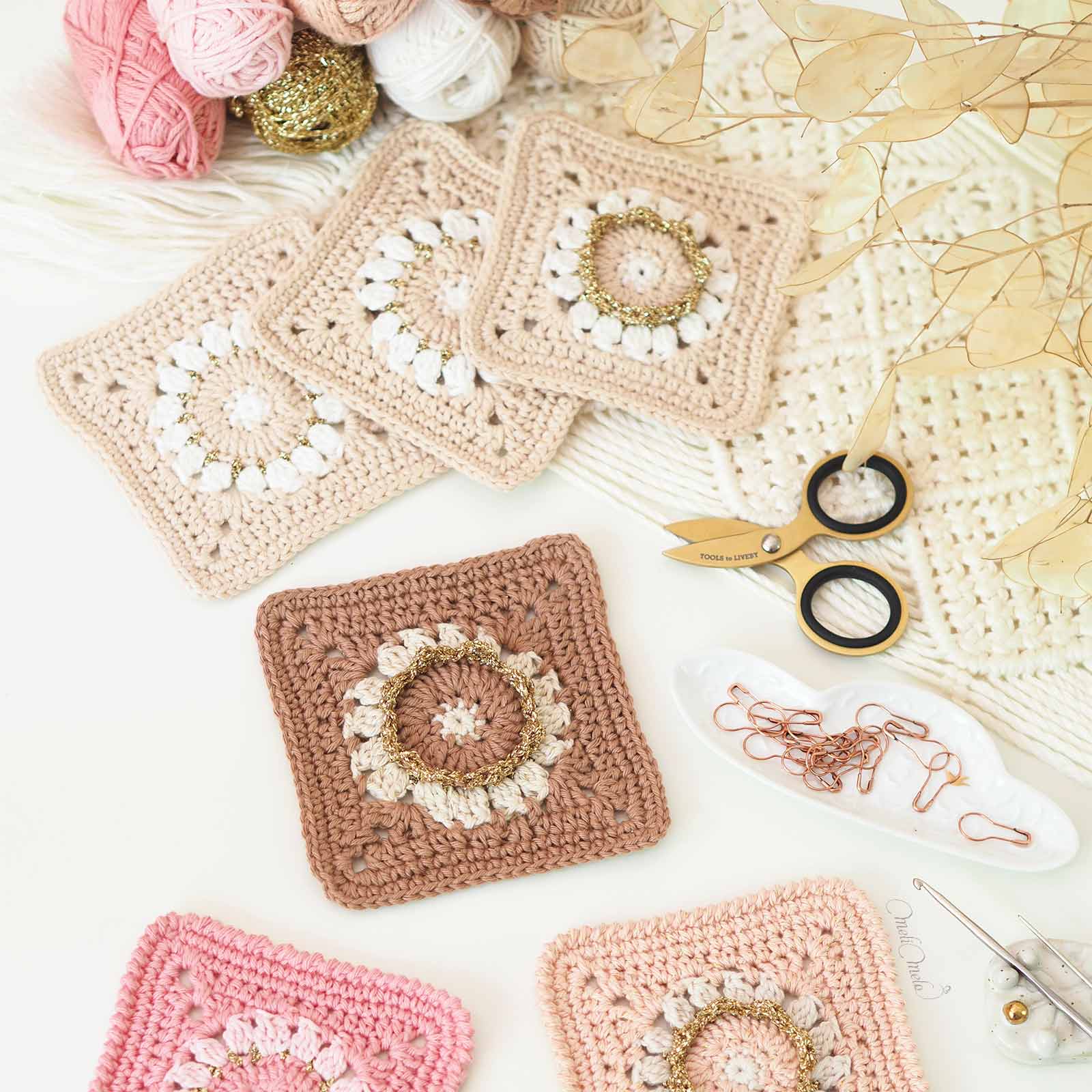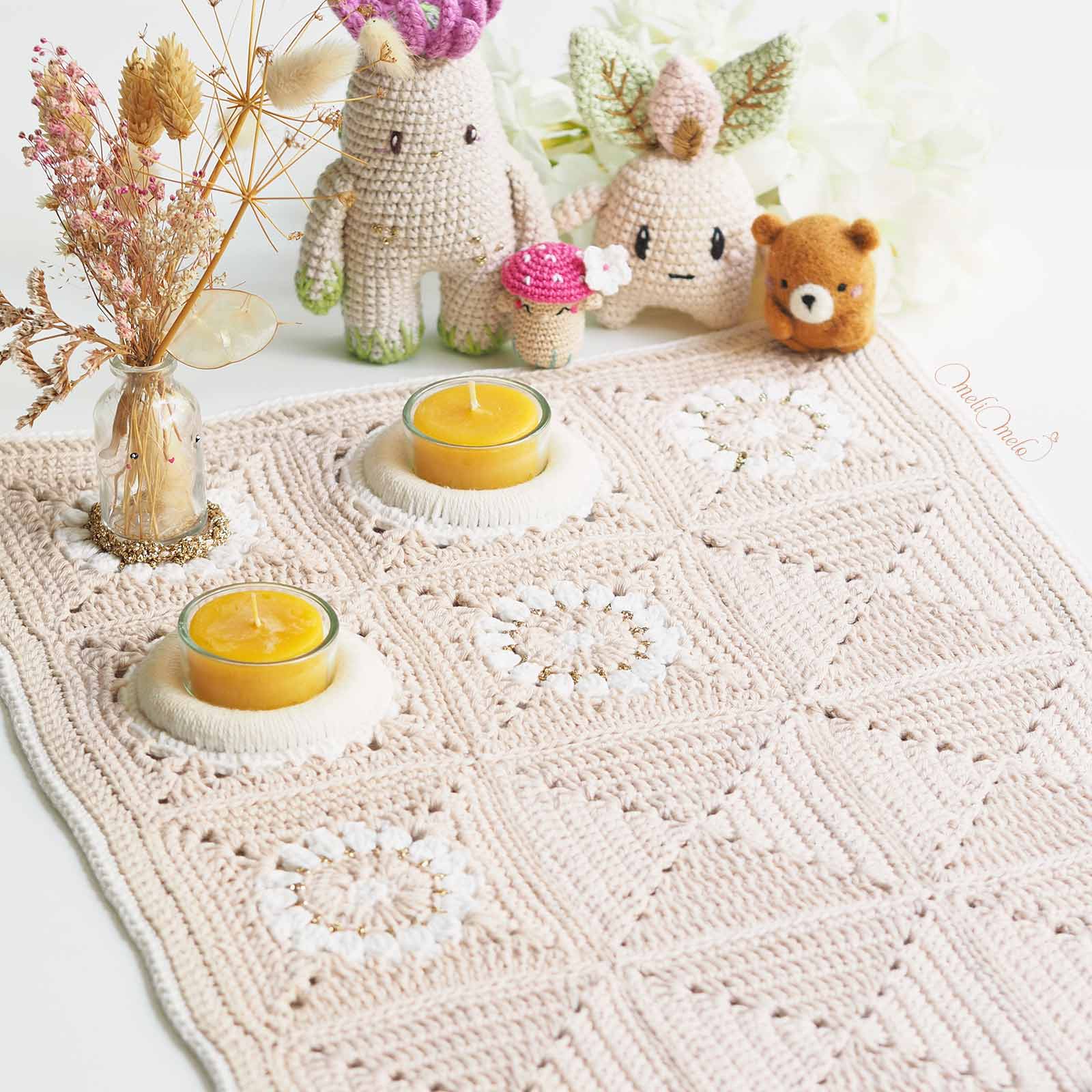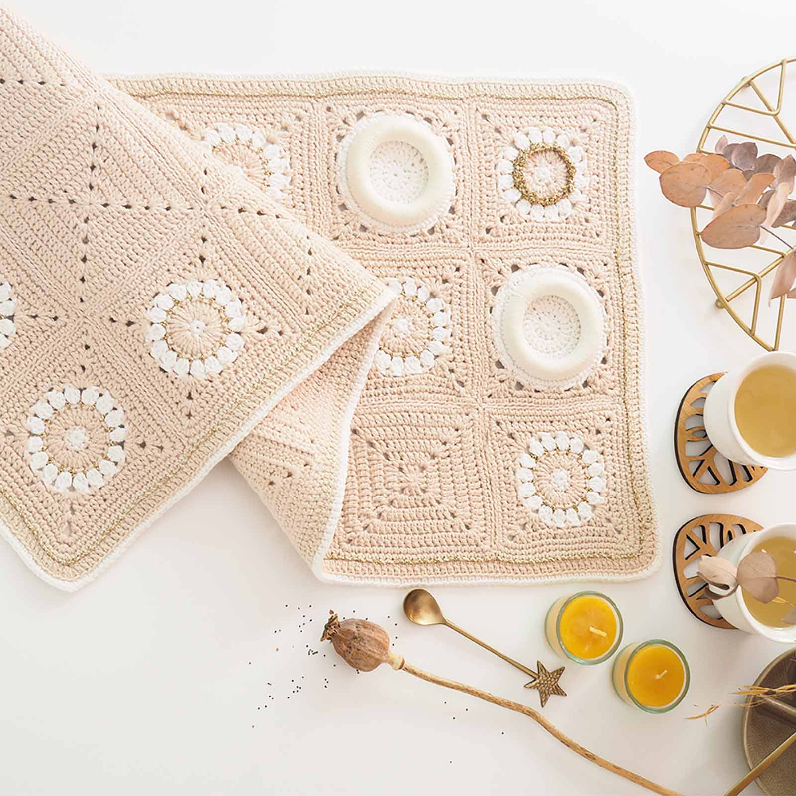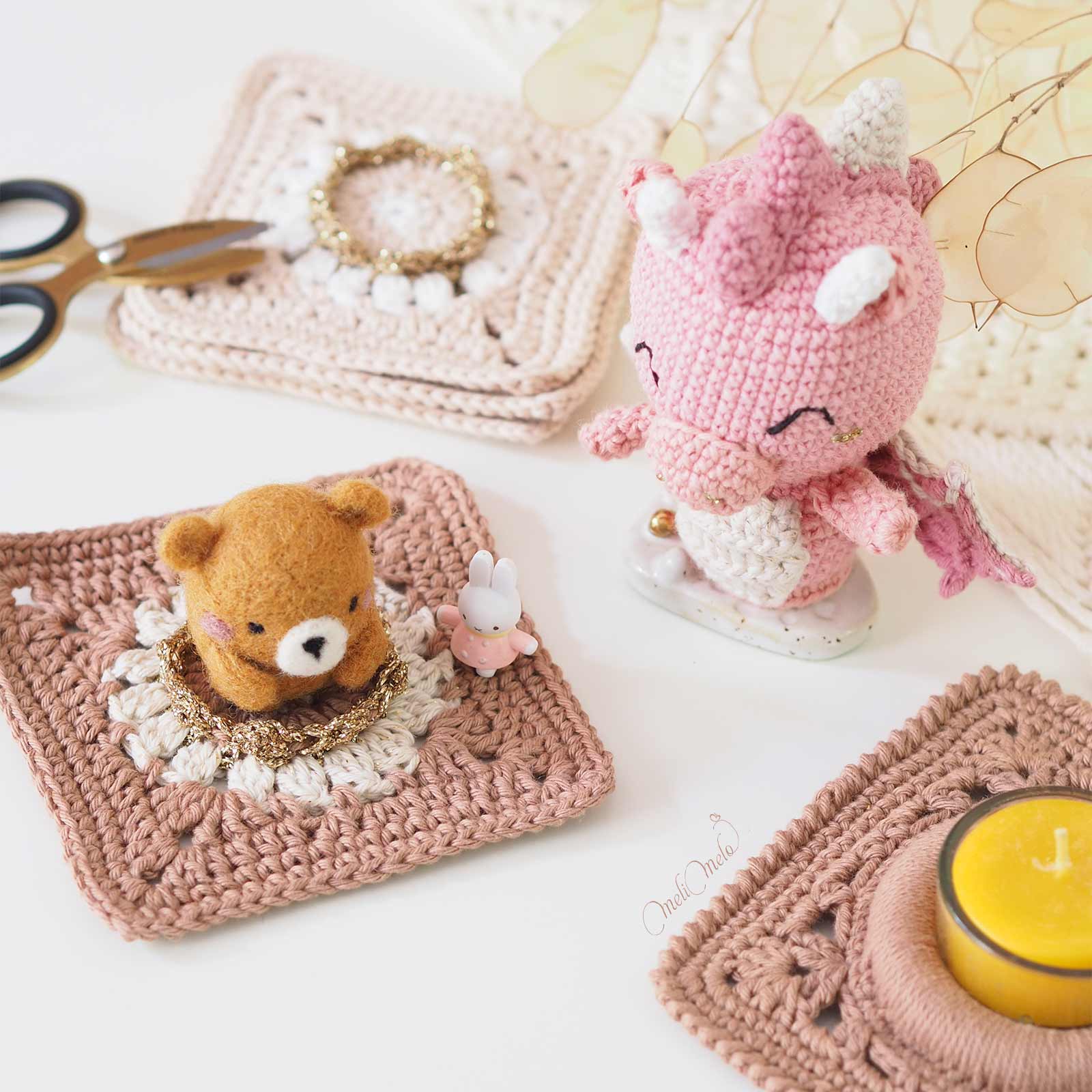 Vous trouverez ici le matériel pour réaliser vous-mêmes votre projet Bô Granny au crochet, que ce soit le tapis ou quelques carrés décos: ⊹ les anneaux en bois naturel, ⊹ les bougies artisanales de notre ami apiculteur, ⊹ les photophores en verre qui rentrent parfaitement dans les Bô grannys, ⊹ le fil coton uni Classic DK Ricorumi ⊹ le fil coton pailleté Twinkly Twinkly DK Ricorumi ⊹ le fil métallisé Lamé Ricorumi… 🧶Bon crochet !🧶 Merci d’indiquer vos références de couleurs en commentaire commande ou par email.
