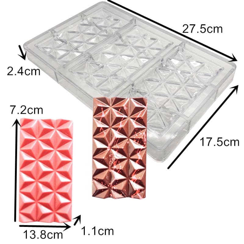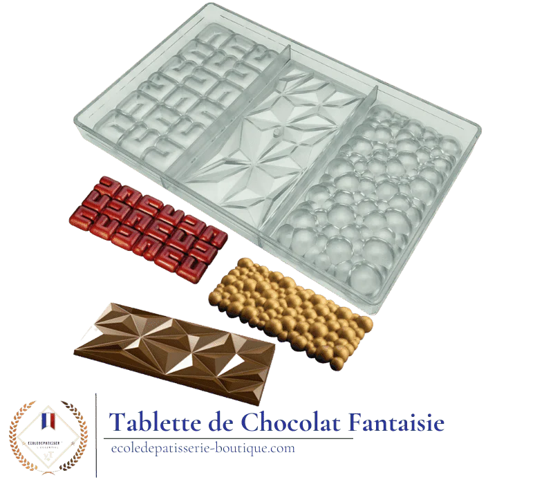 les Moules en forme de tablette de chocolat sont utilisés pour le Moulage des pièces de présentations, mais également pour les pralins et vitrine de confiseur et chocolatier.