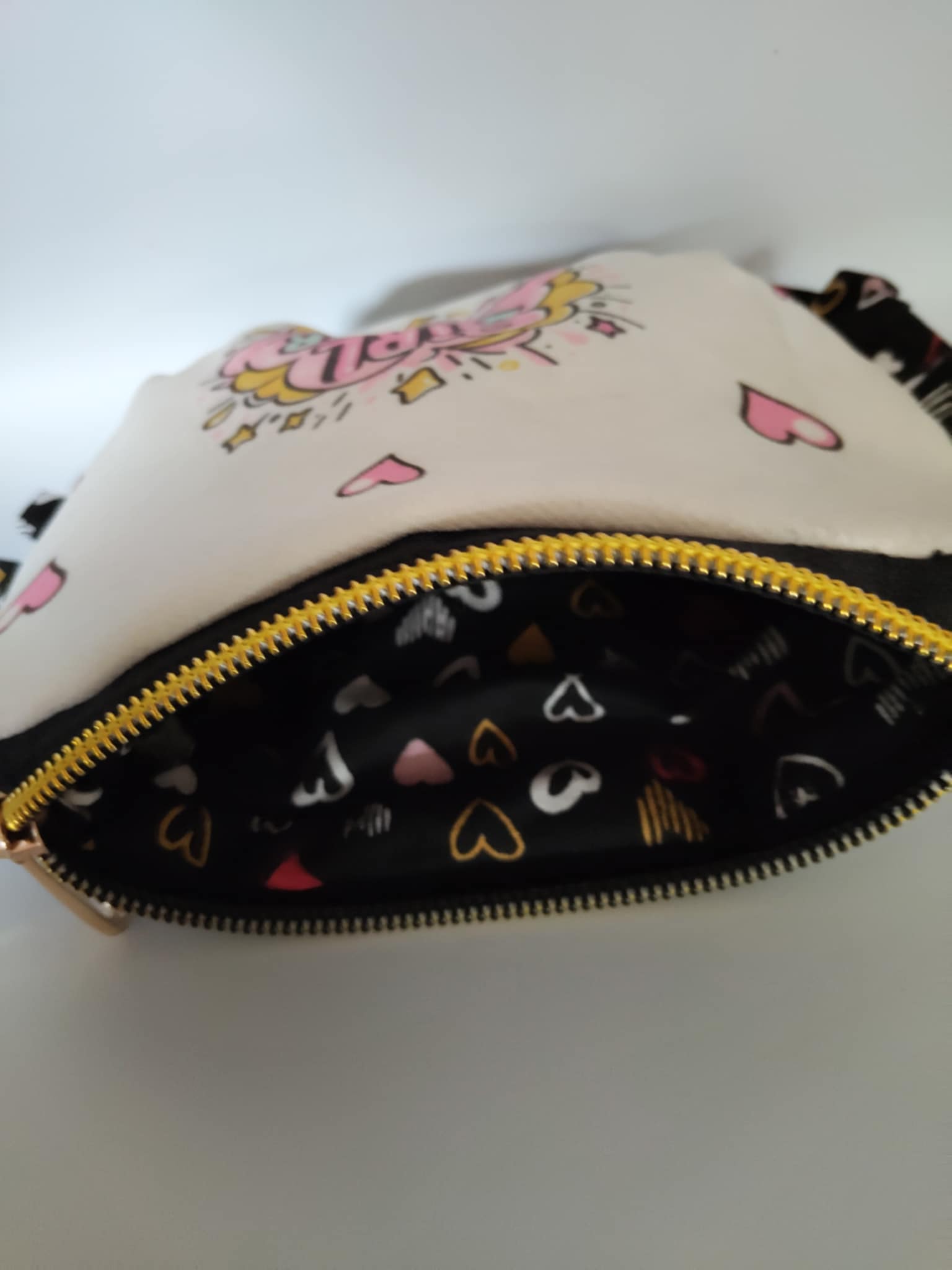 Et un intérieur assorti, doublé dans le même tissu cœur rose que le froufrou 🎀